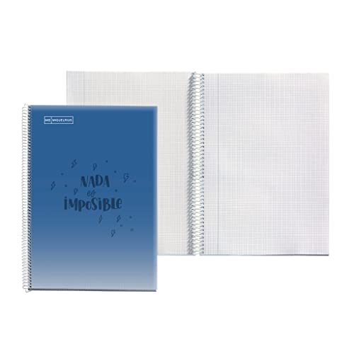 Miquelrius - Quaderno con spirale in polipropilene, dimensioni dei fogli 215 x 309 mm, 80 fogli da 90 g/m², quadretti da 4 mm con margine, colore blu oltremare