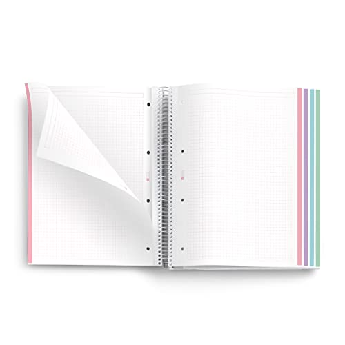 120 fogli quadrati da 5 mm, con testata per titoli e 4 strisce colorate per poter classificare i tuoi appunti. La stampa offset di alta qualità conferisce una maggiore sottigliezza e pulizia alla scrittura, facilitando la lettura e lo studio.