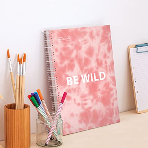 Miquelrius - Taccuino Antivirale, Copertina Rigida in Cartone Antibatterico Duro, A4, 4 Strisce Colorate, 120 Fogli a Righe Orizzontali da 90 g, 4 Fori, Tie Dye Rosa