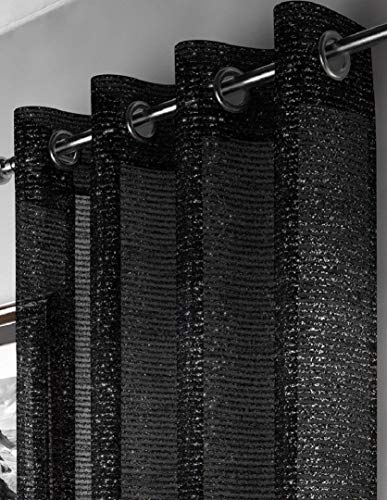 Mirabel - Tenda a Pannello con Drappeggio in Alto - Attacco ad Occhiello/asola - in Retina di Voile con Glitter - Nero - L140 x Lungh 229 cm