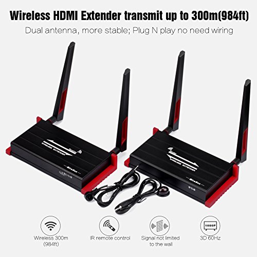 Mirabox Extender HDMI Wireless 300 m / 984ft Sender e Receiver per Streaming HD 1080P con Trasmissione del Segnale IR Uscita per TV PC Dvd Sky HD Box PS4 Satellite Box