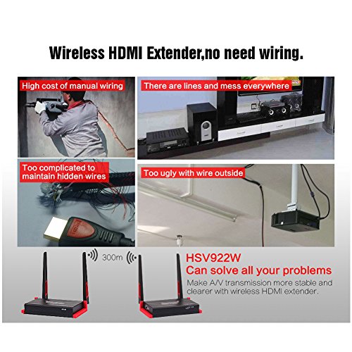 ✔ L'extender HDMI wireless trasmette fino a 984 piedi su una linea di mira.Ti fanno godere di video ad alta definizione fino a 300 metri senza ostacoli tra il mittente e il destinatario.Il blocco influisce sulla base del segnale su diversi spessori del muro.