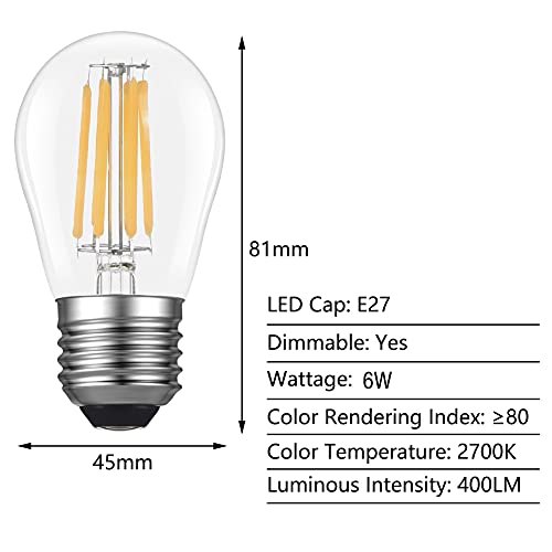 MiracDeu Confezione da 6 lampadine LED E27, dimmerabili, G45, bianco caldo, 2700 K, 6 W (equivalente a 60 W), 600 lumen, CRI 80