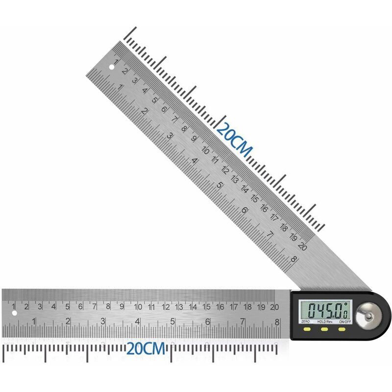 Il display può essere invertito per una facile lettura premendo a lungo ""HOLD / Rev."" per premere ?Combinazione di 2 funzioni? Combinazione di righello e goniometro Puoi misurare lunghezze e angoli per una facile misurazione ?Nota? Il bordo in acciaio inossidabile è affilato. Fai attenzione quando lo usi e tienilo fuori dalla portata dei bambini Materiale: acciaio inossidabile + Lunghezza totale: 400 mm + Intervallo di misurazione: 0~360? Risoluzione: 0,05? + Precisione: 0,3? + Batteria: 1 batteria al litio CR2032