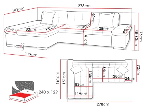 Mirjan24, Malwi Cord - Divano angolare con braccioli regolabili, divano a L, convertibile in letto, con scomparto salvaspazio, divano ad angolo, per soggiorno (Poso 01, lato: a destra)