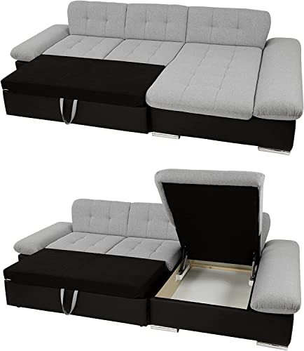 Divano angolare convertibile in letto, con scomparto salvaspazio all'interno.