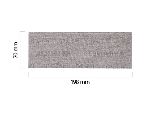 Ambito di fornitura: Mirka Abranet mesh sanding strips 70x198mm, Grana P120, 50 pezzi per confezione. Adatto per levigatrici orbitali coordinate, blocchi di levigatura manuale e levigatura a mano.