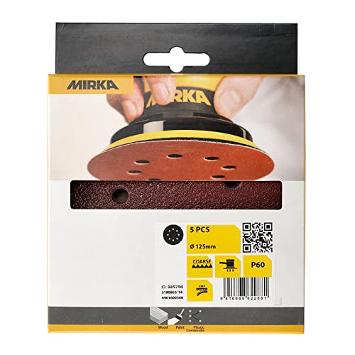 Contenuto: carta vetrata Mirka Velcro Ø 125 mm, 8 fori, grana P60, 5 pezzi per confezione