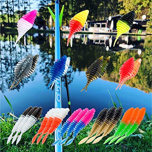 MiRoeFishing - Esca in gomma per pesca a spinning, 4,8 cm, set da 22 pezzi con scatola