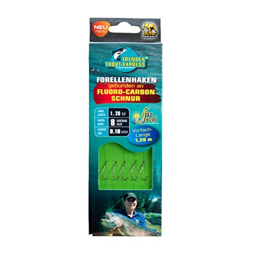 Set: 3 confezioni di ami da pesca con 2 x 5 ami per trota legati su lenze in fluoro-carbonio misura 8 120 cm (invisibili sott'acqua) 1 x 10 FTM ami professionali per trota misura 8 90 cm, testati con successo dal team MiRoeFishing.