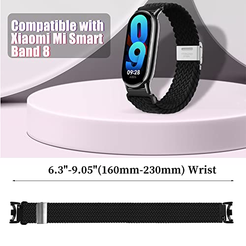 MiRowy Cinturino Compatibile con Xiaomi Mi Smart Band 8(Xiaomi Mi Smart Band 8), Regolabile Intrecciato Cinturino per Xiaomi Mi Smart Band 8, Nero