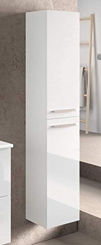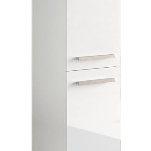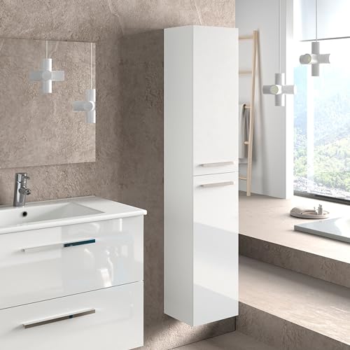 colonna da bagno in Bianco Brillante, 2 porte, con maniglie. finitura in melamina di alta qualità.