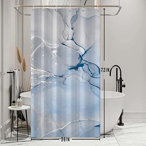MIRRORANG Tenda da Doccia in Marmo Blu, Elemento in Marmo Colorato e Set di Tende da Doccia Inchiostro Bianco con Ganci per Bagno Home Decor, Poliestere Impermeabile,92x183cm