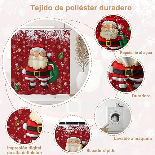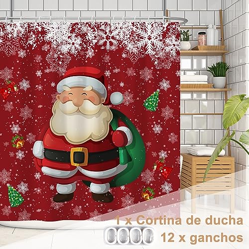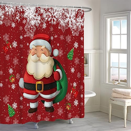 MIRRORANG Tenda da doccia natalizia, Babbo Natale rosso Fiocchi di neve Albero di Natale Campane Tenda da bagno con 12 ganci,183x183cm