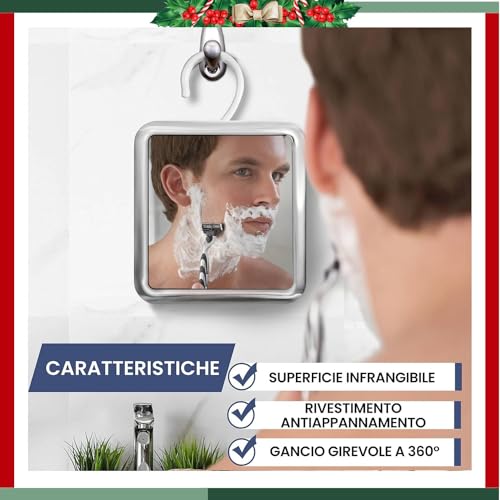 ⭐️ GANCIO A 360° - Con un robusto gancio, questo specchio rimane fermo, qualunque cosa accada. Appendilo su un soffione doccia, asta per tende o dai sfogo alla tua creatività: le possibilità sono infinite!