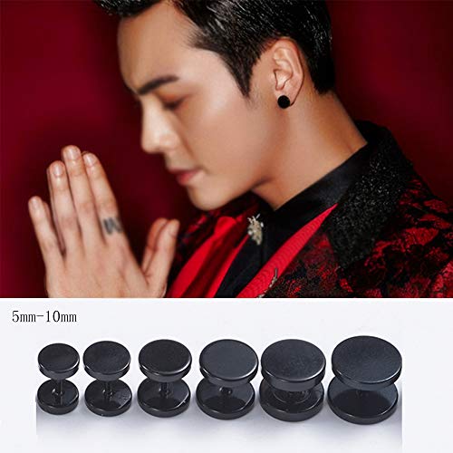 Diverse dimensioni: 6 paia di orecchini neri con un diametro di 5 mm, 6 mm, 7 mm, 8 mm, 9 mm, 10 mm, distanza tra le due piastre: 6 mm, una buona aggiunta a qualsiasi vestito.