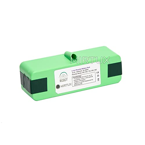 MIRTUX Batteria Ultra Life agli ioni di litio compatibile con Roomba 500, 600, 700 800 e 900, altissima durata d'uso e cicli di ricarica.