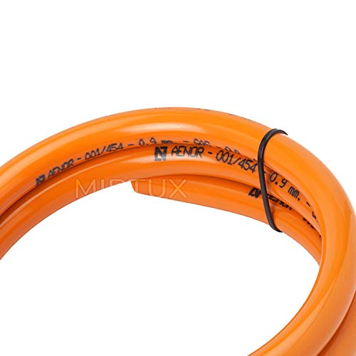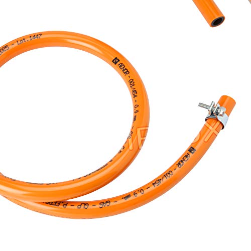 MIRTUX Tubo in gomma per gas butano lungo 1,3 metri e interno di 0,9 cm, include 2 rondelle per l'installazione Colore arancione.