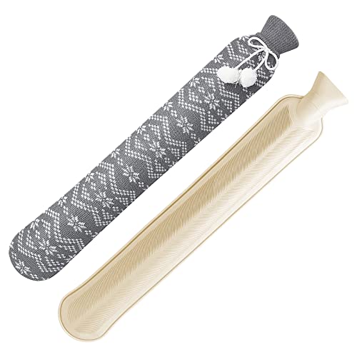Misazy Bottiglia di acqua calda lunga, Bottiglia di acqua calda Extra Calda con Copertura in Peluche Super Morbida, Bottiglia di acqua calda Calda per Collo, Spalle, Schiena e Dolore del Ciclo,Grigio