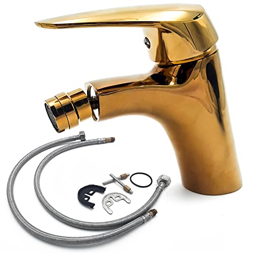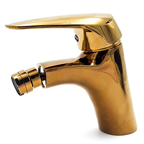Miscelatore Bidet Rubinetto Bagno Dorato Lucido Monocomando Cromo Singola Leva Caldo Freddo Montato Sul Ponte Colore Placca Oro Cromato Spazzolato Beccuccio Regolabile Manico Girevole Moderno Ottone