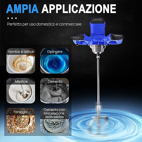 Versatile: il miscelatore produce miscele uniformi e omogenee di materiali da costruzione liquidi e in polvere come colori, malta, colla, intonaci e sostanze simili.