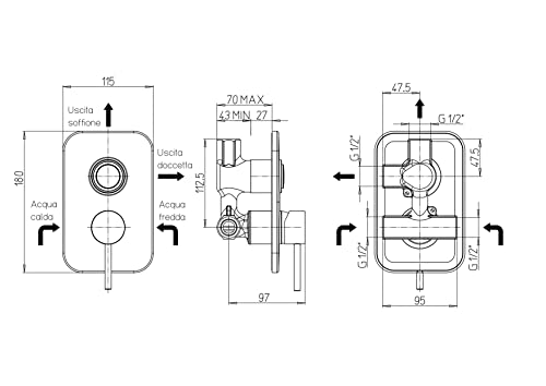 Miscelatore doccia incasso Ducati HD15 con deviatore click-clack cromo