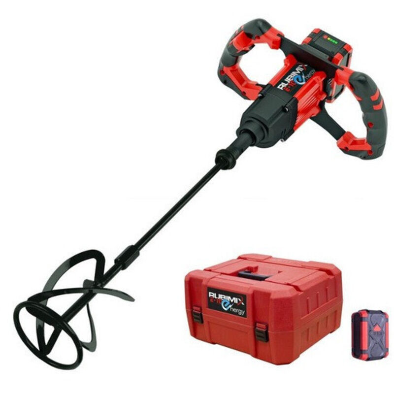 Il Miscelatore Elettrico Rubi Rubimix E-10 Energy con batteria è ideale per miscelare cementi, resine, vernici e altri materiali. La portabilità, la maneggevolezza e il comfort di non affidarsi necessariamente ad una presa di corrente, la libertà e la sicurezza di lavorare senza cavi sono i principali vantaggi del miscelatore RUBIMIX E-10 ENERGY. Equipaggiato con un motore BRUSHLESS, RUBIMIX E-10 ENERGY non richiede manutenzione e aumenta significativamente la vita del prodotto stesso. Dotato di cambio meccanico a due velocità. Interruttore progressivo (Regolazione R.P.M.) per ottimizzare la miscelazione Blocco di sicurezza. Evita l'avvio involontario. Indicatore LED per il livello di carica della batteria. Collegamento alle aste di miscelazione con filettatura 14M e adattatore FAST-IN. Doppio isolamento motore. SPECIFICHE TECNICHE Voltaggio 18V Alimentazione - 220-240V 5A 50-60Hz RPM - 1ª 0-420/ 2ª 0-700 Con valigetta - Peso con valigetta - 8,6 kg ACCESSORI IN DOTAZIONE Fornito con