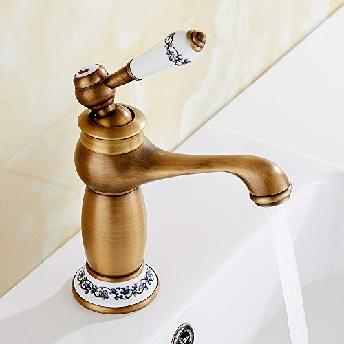 Miscelatore Lavabo Bagno Rubinetto Anticato Ottone Cromato Vintage Monocomando in Ceramica per Lavello da Cucina Bagno (Anticato)