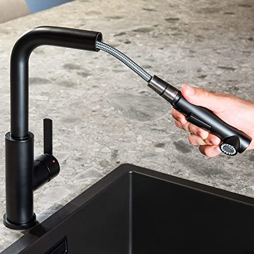 Miscelatore Rubinetto Lavello Cucina Mizzo Design Mauro Black | Acciaio Inox | Colore Nero | Monocomando | Getto Orientabile