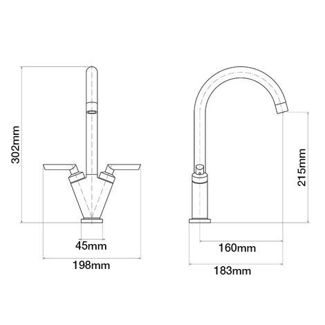 Moderno rubinetto da cucina a collo di cigno a doppia leva.
