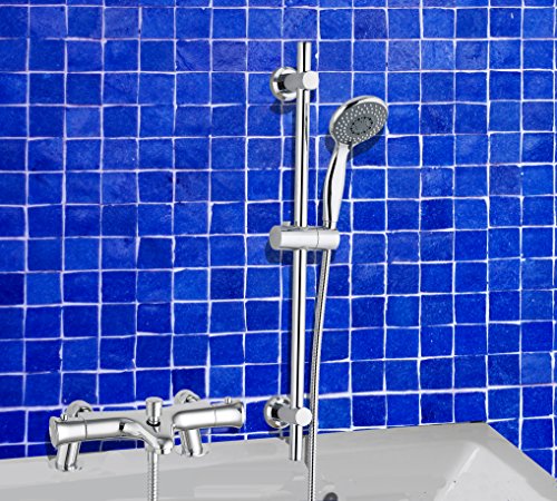 Miscelatore termostatico per doccia e vasca da bagno in ottone cromato con kit saliscendi.