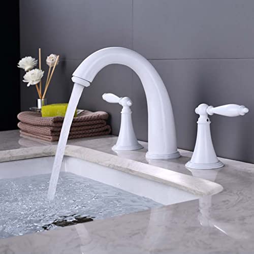 Miscelatore Vintage per Lavabo Bagno Caldo e Freddo Rubinetto Tipo Split 2-Handle Rubinetto Bagno Lavabo Caldo e Freddo Rame Due Maniglie Tre Fori Rubinetteria per Bagno,Bianco