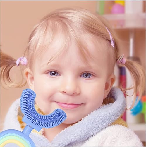 Miscis Spazzolino da denti per bambini a forma di U per bambini dai 2 ai 7 anni, spazzolino da denti per bambini in morbido silicone per uso alimentare, spazzolino manuale a 360° per bambini
