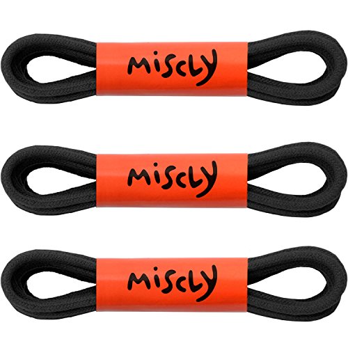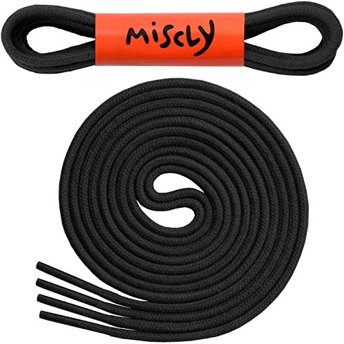 Miscly Lacci per Scarpe Eleganti [3 Paia] Stringhe Rotonde e Sottili - 100% Cotone - Diametro 2.4mm (102 cm, Nero)