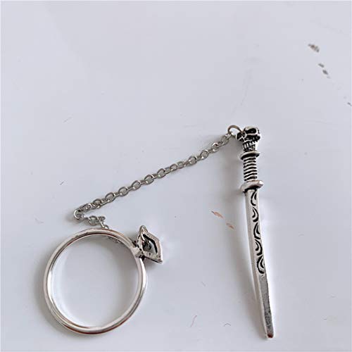 MISHITI Punk Skull Sword Mobile Plug-in Finger Ring Medieval Knight Dagger Ring Band