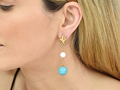 ☆ MATERIALI DI VALORE: Orecchini di alta qualità fatti a mano, interamente in argento sterling placcato oro giallo 18 carati. Stella marina impreziosita con agata bianca e turchese.