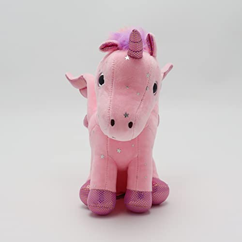 Mislaxy Unicorno Peluche Arcobaleno Multicolore Unicorno Pegasus Kawaii Morbido Bambola Dettagliato con Ali di Corno e Coda Arcobaleno Regalo Compleanno Natale, 23CM (Rosa)