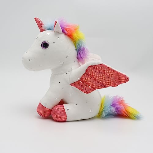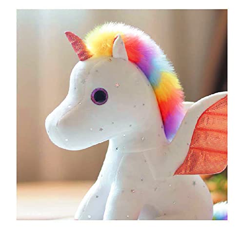 Mislaxy Unicorno Peluche Arcobaleno Multicolore Unicorno Pegasus Kawaii Morbido Bambola Dettagliato con Ali di Corno e Coda Arcobaleno Regalo Compleanno Natale, 23CM (Bianca)