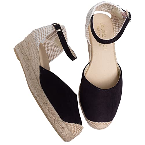 No es Lo mismo - Sandali o Espadrilles di Iuta con Zeppa per Donna | Plateau 3 Corde Sparto con Fibbia e Punta Chiusa | Colore Sabbia, Verde, Rosso, Rosa, Blu Marino e più