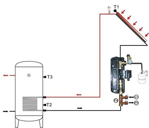 It can be installed horizontally at the lowest point of the solar circuit (see the below diagram).