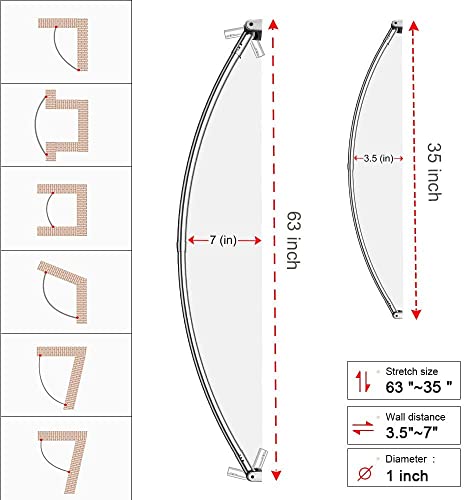 Area applicabileDistanza tra due estremità di aste per tenda da doccia a forma curva 90-160 cm, inclusi 12 ganci per tenda da doccia antiruggine. L'asta per tende estensibile a forma curva è adatta per bagno, vasca da bagno, guardaroba, spogliatoio, ecc. Si prega di misurare la lunghezza desiderata prima dell'acquisto.