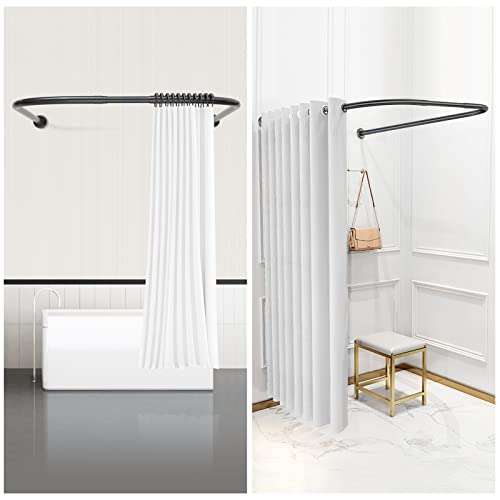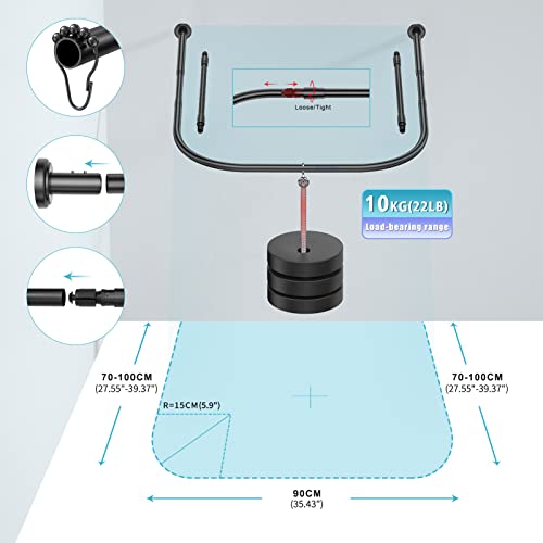 Misounda Asta Per Tenda da Doccia a Forma di U Senza Foratura Estensibile Acciaio Inossidabile Bastone Doccia Angolare (70-100) x 90 x (70-100) cm Con 24 Anello per Tende,per Bagno,Camerino-Nero
