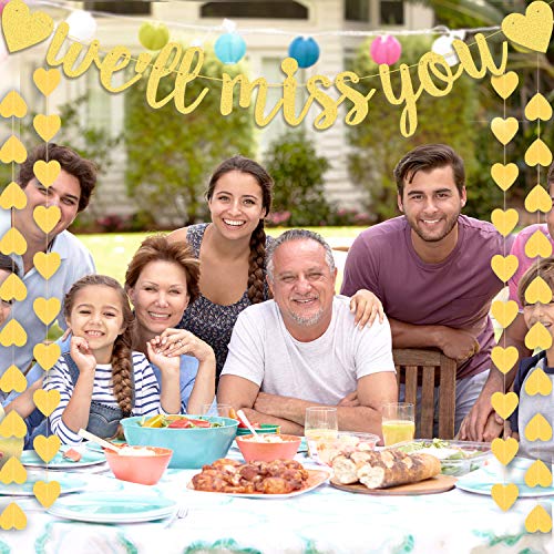 We'll Miss You Bandiera Decorazioni Glitter Oro Banner Bandiera di Addio per Laurea in Pensione Going Away Office Work Festa (Colore Oro)
