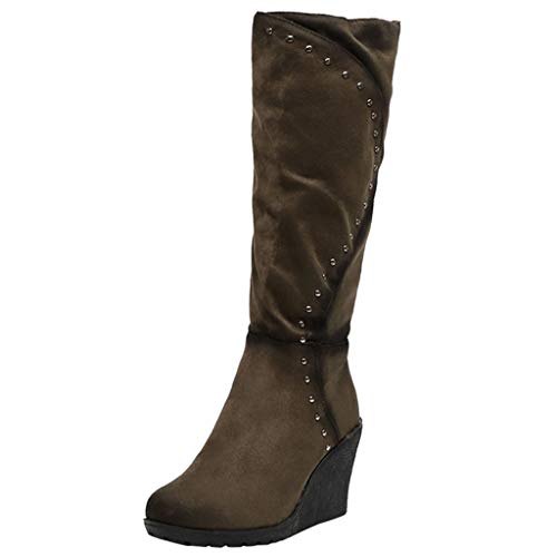 Miss Fortan Stivali Lunghi Donna Autunno E Inverno Retro Roma Stivali con Zeppa Tacchi Alti con Cerniera Casual Taglie Forti Scarpe da Esterno Snow Boots 35-43