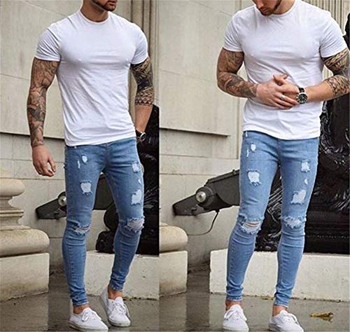 MISSAMO Pantaloni Casual Sportiva Uomo Jeans con Cerniera Buco Denim Jeans con Cerniera Pantaloni Sfilacciati Skinny Pantaloni Strappati,#4003,M
