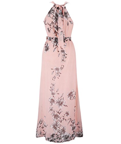 MissFox Donna Vestito Lungo di Chiffon Collare del Halter Senza Maniche Boho Abito da Maxi (4XL, Pink)