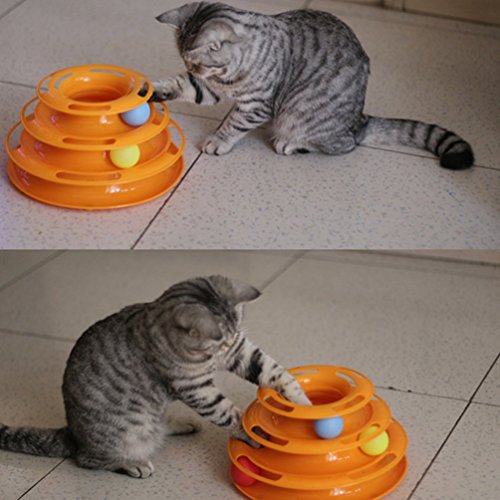 MissFox Gatto Giocattolo Animale Giocattolo - Torre di Tracce con Le Palla - Pet Giochi Interattivi dei Giocattoli (Arancione)