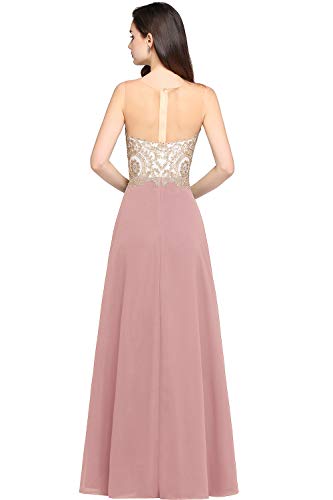 Misshow - Vestito da sera chic lungo con applique floreale traforata in mussola Rose Profond 46