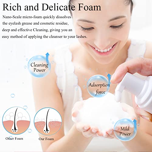 Missicee,Shampoo per ciglia per extension ciglia, 100 ml, detergente sensibile per ciglia senza olio, spazzola morbida e tampone in cotone riutilizzabile, per uso domestico e salone