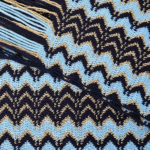 Missoni Sciarpa Made in Italy 200x40 cm Stola Donna Uomo Filo Oro Multicolore SC47WMD7141 Blu